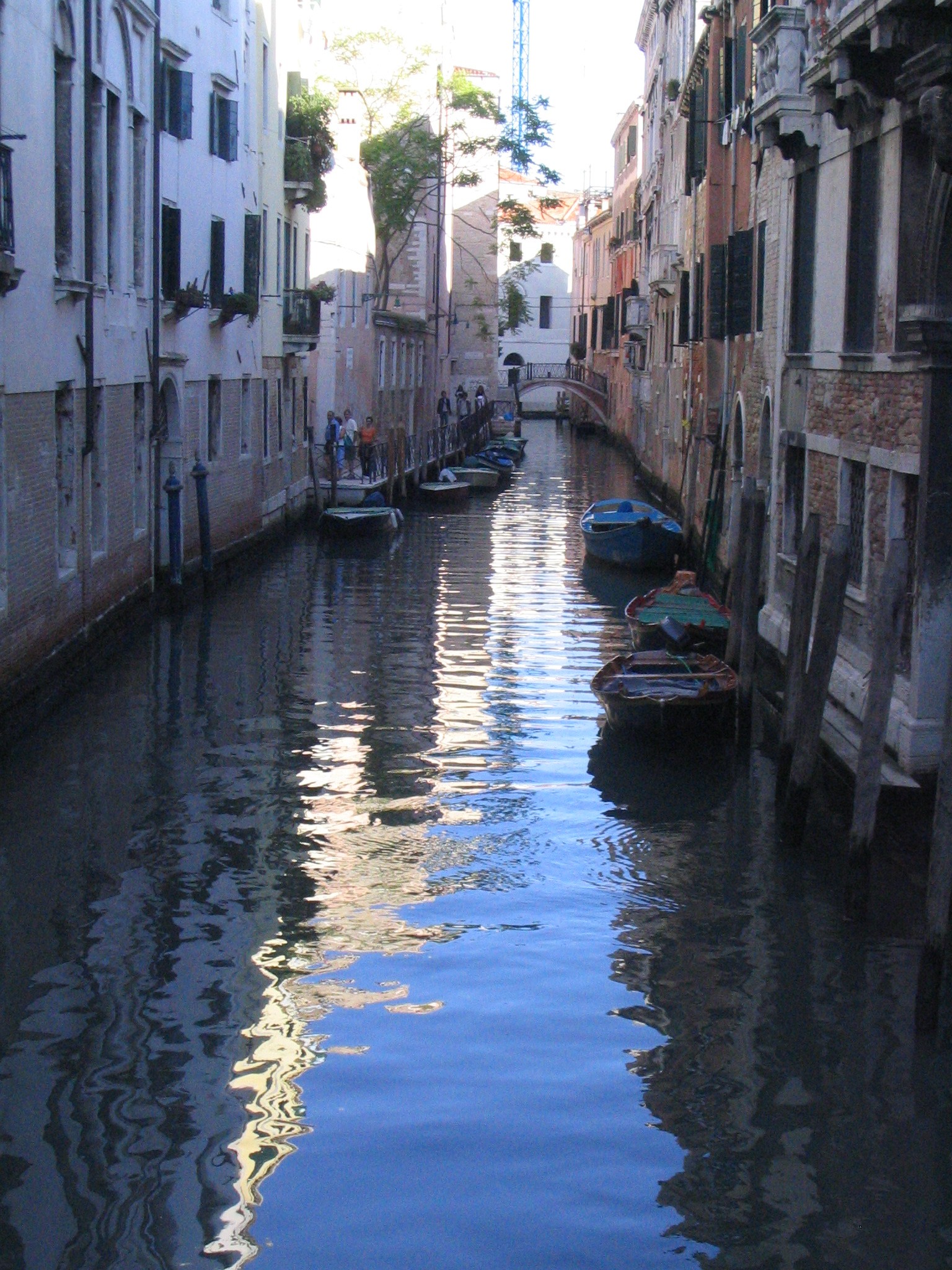 Au bout d’un moment, le taxi bifurqua et s’engagea dans une voie étroite et ombragée, ramenant sa vitesse à celle d’un pas d’homme. L’animation jubilatoire du Grand Canal s’était dissoute dans le silence. L’embarcation fendait, dans une torpeur éprouvante, une eau noire et lisse comme de la mélasse qui se plissait dans notre sillage en ondulations lentes et grasses. J’aurais voulu que nous nous envolions et que nous y soyons enfin, mais l’étroitesse et la langueur des lieux contraignaient à la retenue. Amarrés les uns derrière les autres, des petits bateaux rouge vif, bleu ciel, vert pomme, couverts de bâches de toile, dormaient dans la moiteur du midi, tanguant à peine à notre passage. J’inspirai profondément et levai la tête vers la verdure qui, contre toute attente, s’accrochait aux interstices des vieux murs décrépits. Aux fenêtres, des fleurs cherchaient la lumière et des cordes à linge pendaient comme de grands pavois. Et juste au-dessus, la route azurée du ciel resplendissait, pleine de promesses.