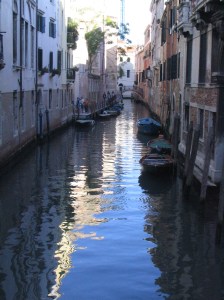 Au passage des portes, je marquai le pas. Éblouie par le soleil éclatant, je clignai des yeux. Je recevais en plein cœur le paysage qui s’étalait devant moi. Une enfilade de palais aux tons crème, ocres et roses se miraient en tremblotant dans l’eau glauque du Grand Canal, théâtre d’un trafic intense. Des vaporetti rouillés, poussifs et bondés, des bateaux taxis rutilants, des gondoles noires et laquées, des embarcations à moteur de toute nature s’entrecroisaient en un joyeux ballet aquatique. Je gagnai l’embarcadère et pris un taxi. Le pilote lorgna mon bout de papier et se jeta dans la mêlée. Debout, à l’extérieur de l’habitacle, une main agrippée au bastingage, je cherchais mon souffle. Je m’enivrais du défilé des arcades et des colonnades qui affleuraient l’eau dansante sur fond de mosaïque sonore faite du rugissement des vaporetti s’arrachant au quai, du clapotis des vagues se brisant sur les coques, de notes d’accordéon et de bribes de chansons napolitaines entremêlés. Je buvais ce décor d’opérette en pensant que, derrière sa façade, quelque part, dans cette ville, un homme m’attendait.