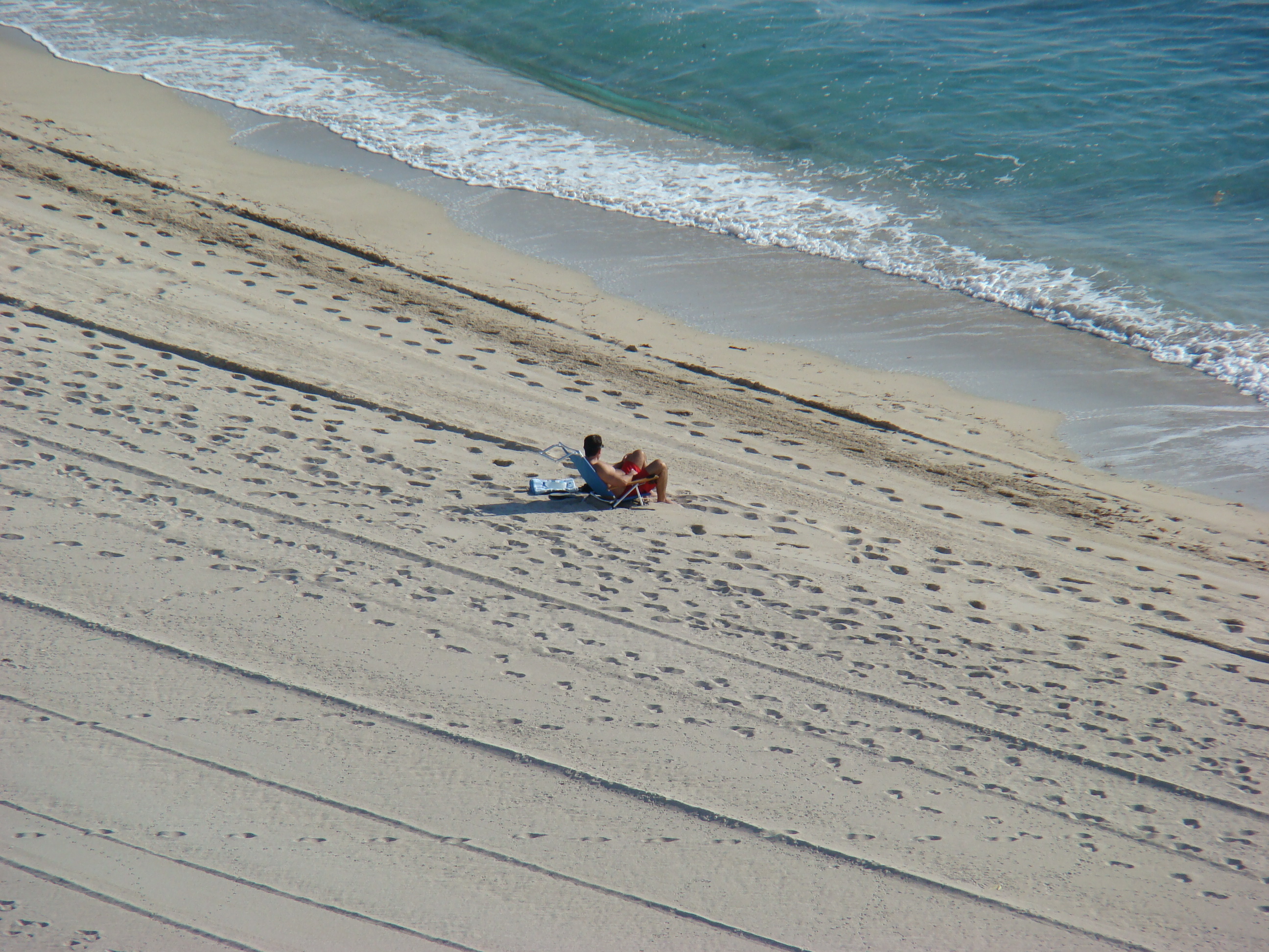 Mais qu’est-ce qu’une plage? Une bande de sable cousue à la mer. Oui, mais encore… Du haut de mon nid, je suis captivée par les milliers de pas qui témoignent de la fascination qu’exerce ce grand carré de sable sur les bipèdes à peau et à plumes et dont les manifestations varient au gré du jour.