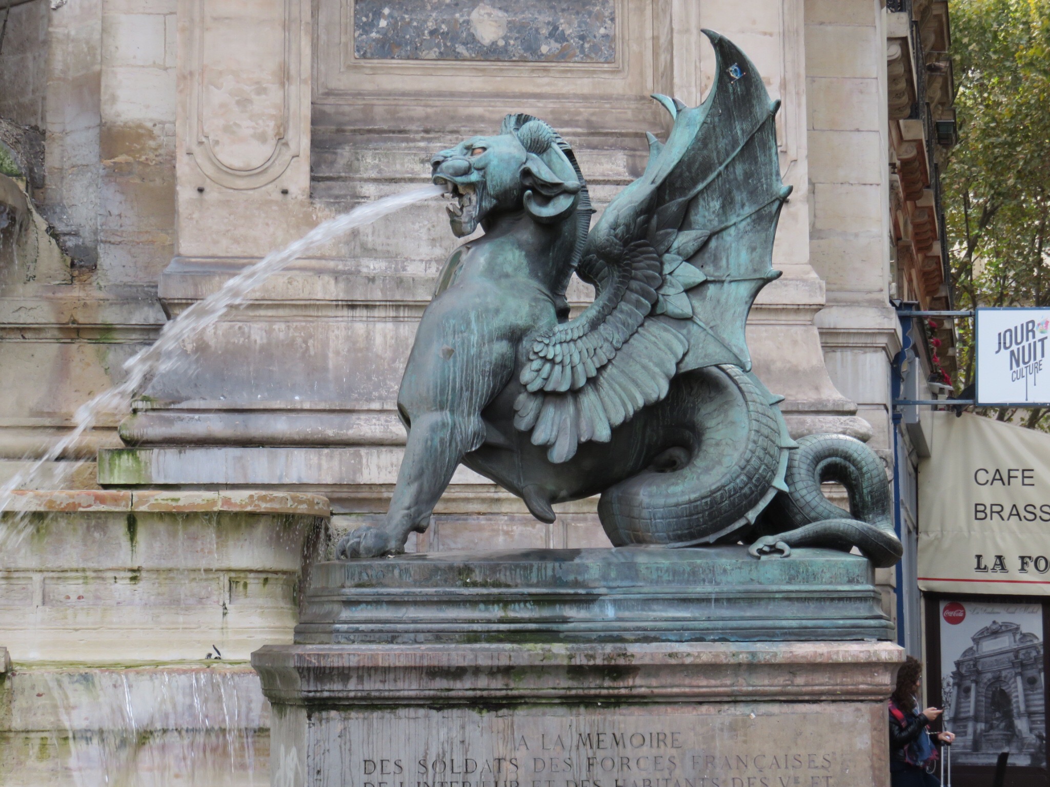 Sur le chemin du retour, place Saint-Michel et sa fontaine rendent hommage aux membres des forces françaises et aux habitants de Paris qui trouvèrent la mort en combattant pour la libération de leur ville en 1945.