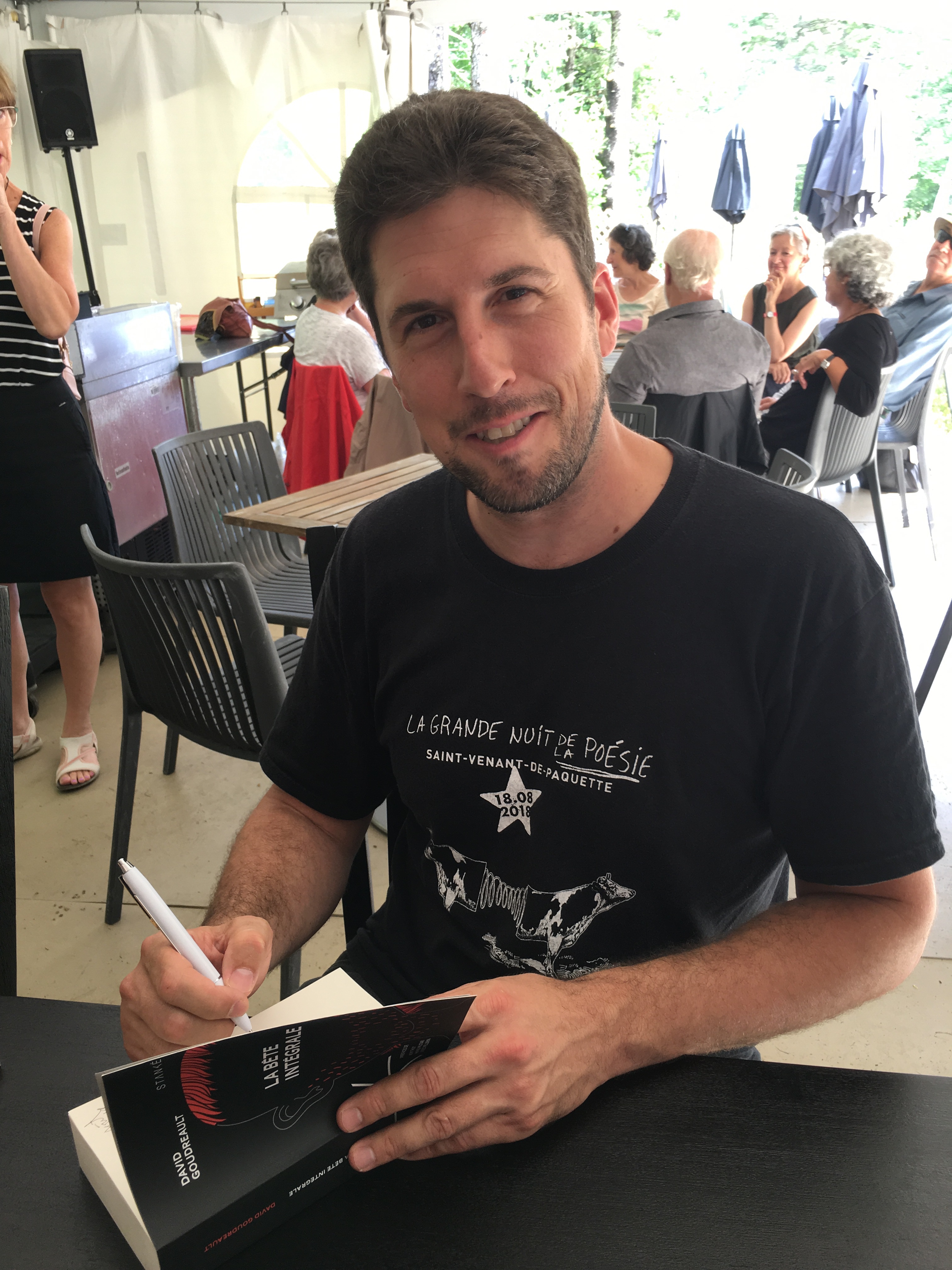 Sa passion est communicative et, dès la fin de l’entrevue, je cours à la librairie temporaire jouxtant le chapiteau pour acheter des livres, dont la trilogie, La bête intégrale, qui réunit ses trois premiers romans. J’avais déjà lu le premier tome, La bête à sa mère, et j’en avais été soufflée, comme en fait foi le billet publié l’an dernier.