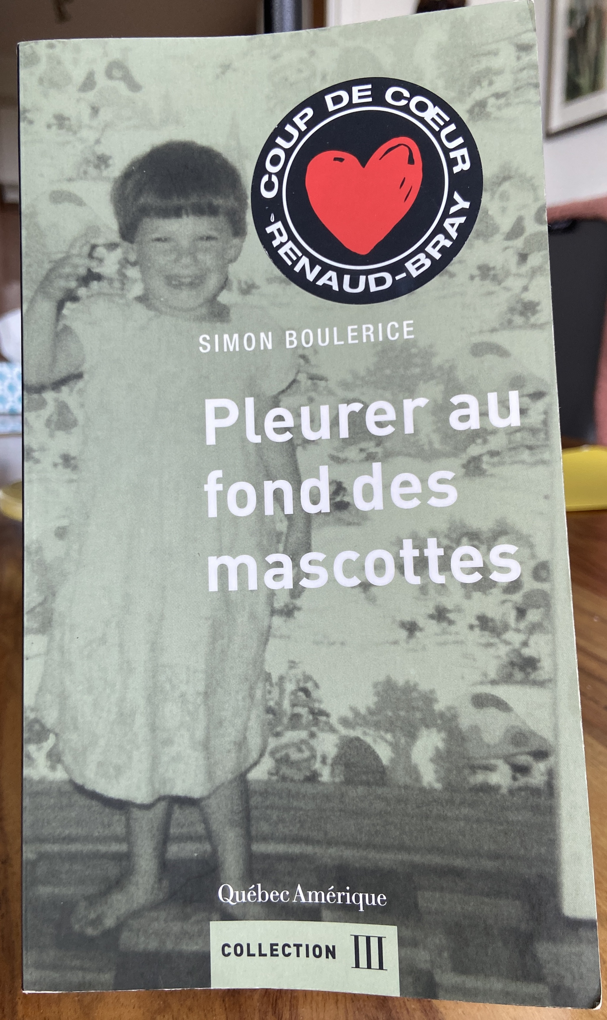 Avant de lire Pleurer au fond des mascottes, je connaissais peu de choses de Simon Boulerice. Une vague idée de son visage et, par quelques chroniques entendues à la radio, l’impression d’un homme créatif et « speedé », doté d’un bon sens de l’humour. C’est très peu compte tenu de la riche feuille de route de ce créateur un peu déjanté, ce touche-à-tout hyperactif, dont, notamment, une cinquantaine de publications !
